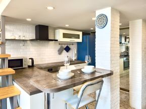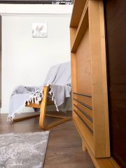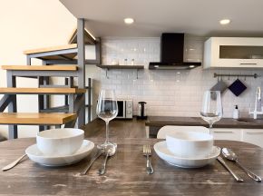 На втором уровне вы найдете уютную спальню, а на первом уровне расположена уютная гостиная, где вы можете провести вечер, расслабиться на диване и наслаждаться просмотром любимых фильмов. В апартаментах есть 4 удобных спальных места — кровать для двоих и комфортный диван, который легко трансформируется в дополнительную кровать.