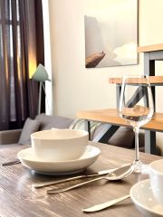На кухне вы найдете все необходимое для приготовления свежей и вкусной еды. Мы предлагаем вам большой холодильник и стол для ужинов с семьей или друзьями. Все необходимы столовые принадлежности.