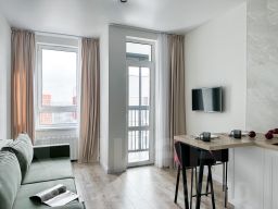 - Уютная комната с выходом на лоджию и красивым видом из окна;