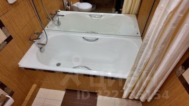 В ванной комнате большая ванна и новая сантехника.