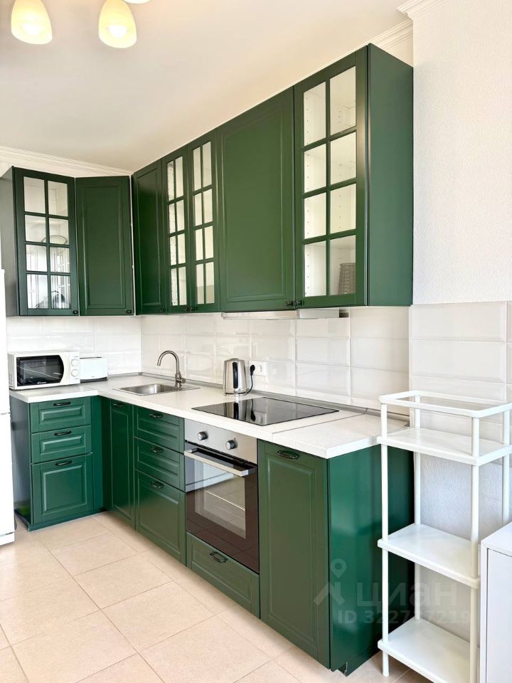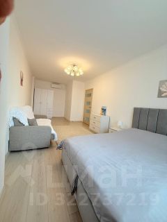 Квартира полностью укомплектована всем необходимым. Комната - 20 кв.м. в которой: двуспальная кровать, диван, шкаф, кондиционер, Кухня с кухонным гарнитуром, включая технику: электрическая варочная панель, духовой шкаф, вытяжка, холодильник, СВЧ, обеденный стол и стулья. Совмещенный санузел. В ванной комнате есть стиральная машина.