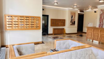 В холле подьезда расположена комфортабельная зона отдыха с диванами и столиками.