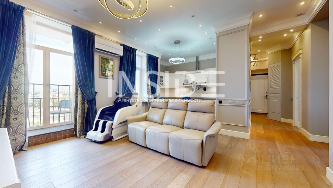 Расположена в ЖК Дом на Набережной на 10 этаже, в 5 минутах пешком от Кремля, в окружении лучших школ, парков, музеев и главных достопримечательностей Москвы. Отделка квартиры выполнена в Нео-Классическом стиле с итальянской мебелью и современной техникой.