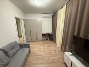 В квартире есть все необходимое для комфортного проживания: современная мебель на кухне и в комнате, а также вся необходимая техника — кондиционер, холодильник, посудомоечная и стиральная машины, телевизор. Совмещенный санузел оборудован ванной, что дополнительно добавляет удобства.