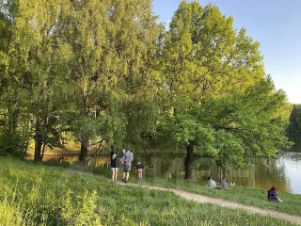 Зелёный район, множество парков вокруг, развитая инфраструктура района.