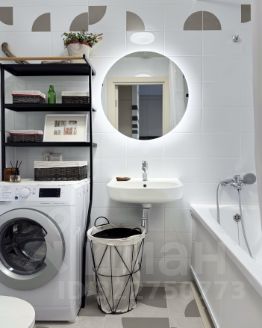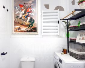 • санузел (стиральная машина, полотенцесушитель, ванна, раковина, и даже картина)