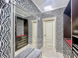 В квартире: С мебелью, Парковка, Посудомоечная машина, Стиральная машина, Бойлер, Душевая кабина, Теплые полы, Спутниковое/кабельное телевидение, Кондиционер, Видеонаблюдение, Интернет, Балкон, Вид на улицу, Европланировка, Ванна, Интерьер в классическом стиле, Консьерж, Гардеробная комната, Ремонт - дизайнерский, Кухонная мебель, Окна на улицу, Окна во двор