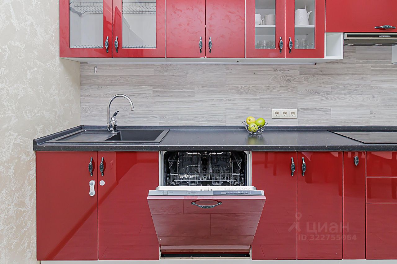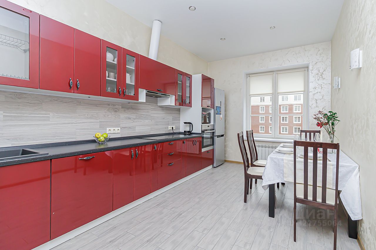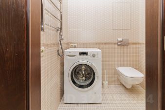 На кухне имеются холодильник, газовая плита, духовой шкаф, посудомоечная машина и обеденный стол в комплекте со стульями. Стиральная машина в квартире также имеется.