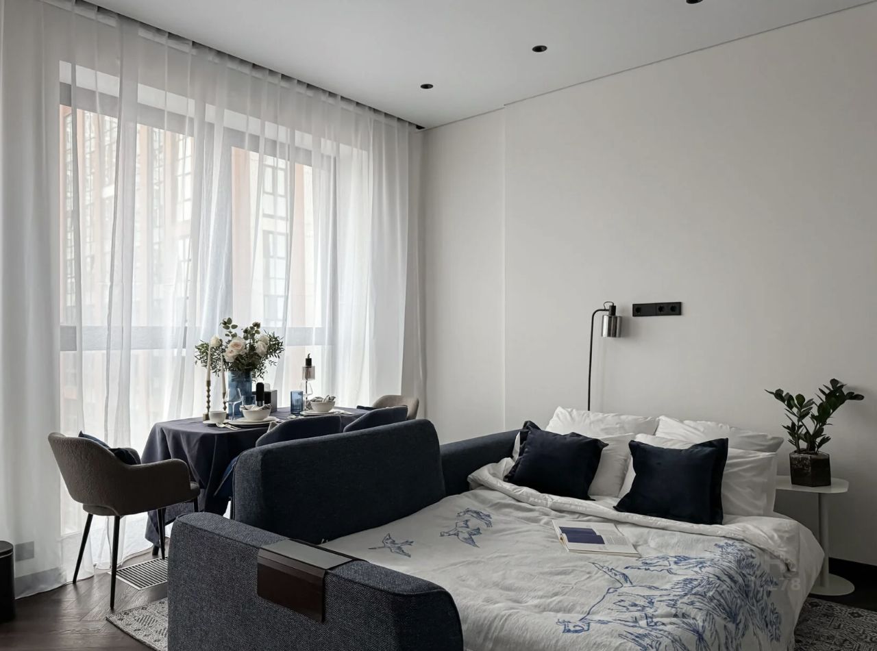 Интерьер в минималистичном стиле: светлые пастельные оттенки, много воздуха и света.