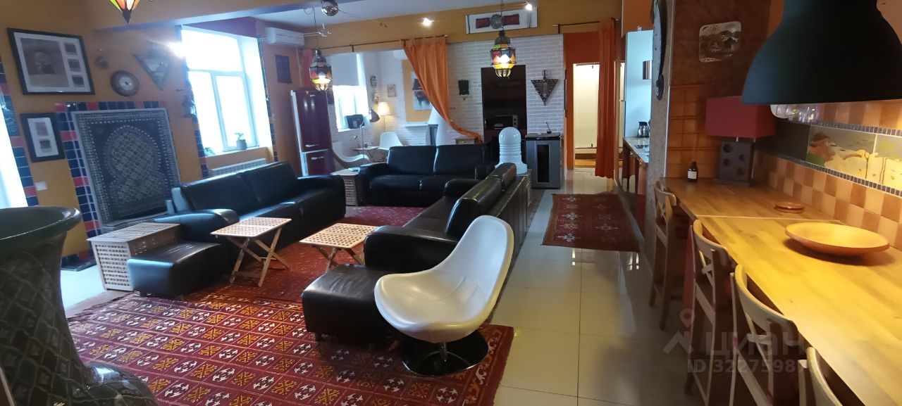 Общая площадь составляет 125кв. м, включая жилую зону в 80 кв. м и кухню на 20 кв. м. Апартаменты находятся на 6-м этаже 6-этажного дома. Высокие потолки в 3 метра и окна, выходящие как во двор, так и на улицу, создают ощущение простора и света.