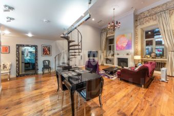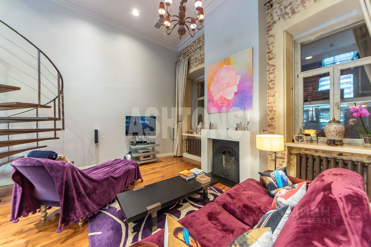 Предлагается в аренду роскошная двухуровневая квартира по адресу: Староконюшенный переулок 33, ЦАО, р-н Арбат. Исторический дом 1901 года постройки.