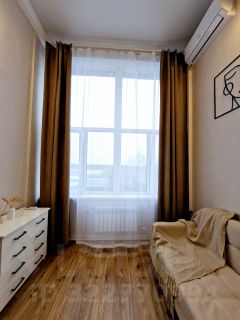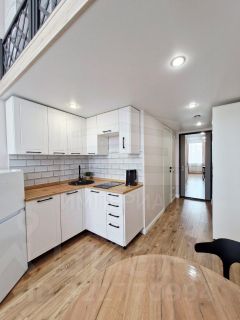 Уютная студия с мебелью и техникой.