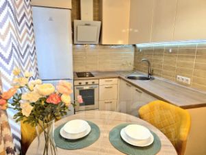 Просторная 1к.кв. квартира в сердце столицы. Современная и супер уютная, в комфортных светлых тонах! Окна выходят на тихую зеленую улицу.