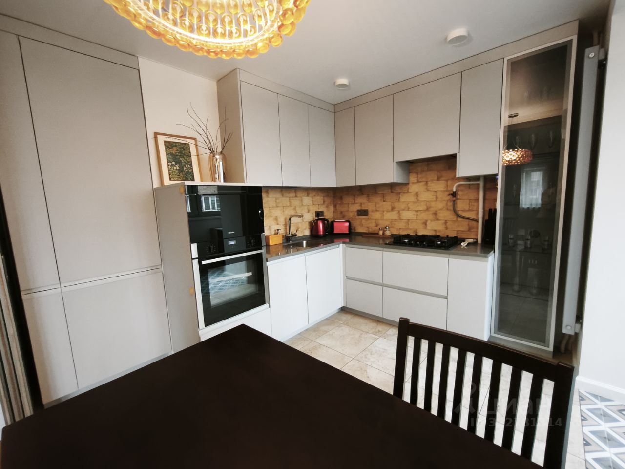-Кухня-гостиная ( студия) с раздвигающейся дверью, есть вся необходимая бытовая техника Духовой шкаф Neff, пароварка Miele, винный шкаф, кондиционеры, теплые полы в ванной комнате и в зоне двух балконов.