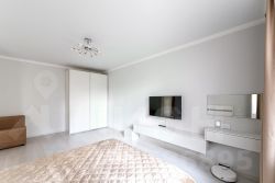 Квартира полностью меблирована (кухонный гарнитур, мягкая мебель, шкафы и другие места хранения) и оборудована современной бытовой техникой от ведущих производителей (холодильник, духовой шкаф, варочная панель, стиральная машина, микроволновая печь, кофемашина, телевизоры, робот-пылесос).