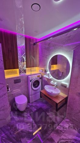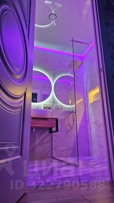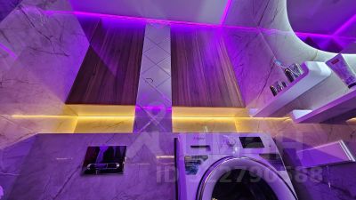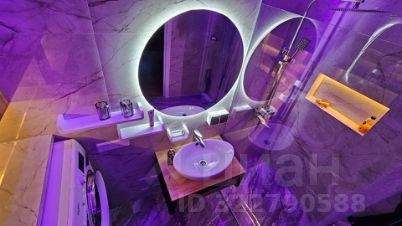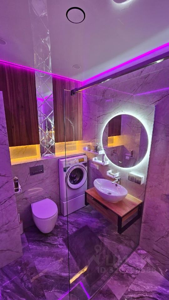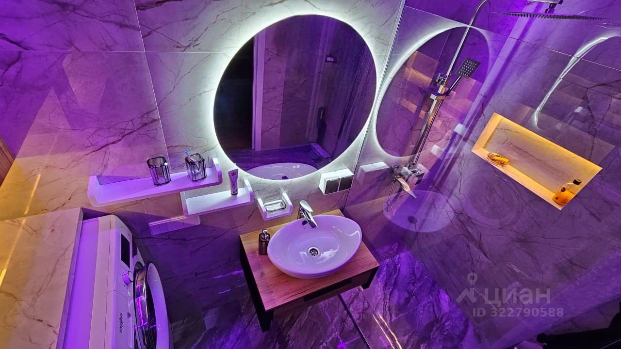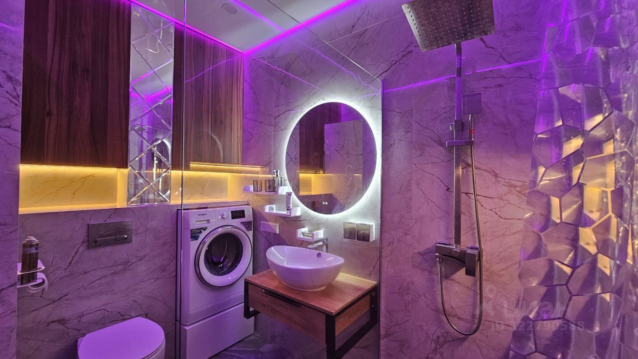 Дизайнерский ремонт: ванная комната оформлена с любовью и имеет 4-уровневую подсветку, создающую атмосферу уюта.