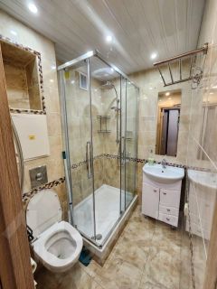 В квартире сделан современный евроремонт, установлена необходимая мебель как на кухне, так и в комнате. Из техники есть холодильник и стиральная машина. Санузел совмещенный, оборудован душевой кабиной. Окна квартиры выходят во двор, что гарантирует тишину и уют.
