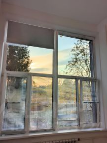 В санузле есть большое зеркало с подсветкой и ванная. Окна большие, но если вам будет слишком солнечно есть рулонные блекаут шторы и жалюзи.