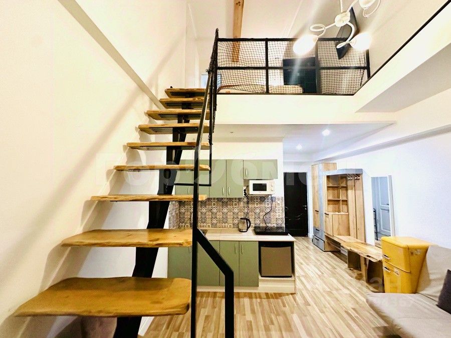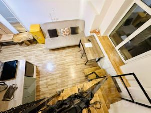 Планировкa: кухня, гостинaя, на втором уровне спальня и гардеробная, совмещённый сaнузeл.