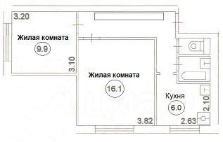 Планировка: кухня 6 кв.м., изолированные жилые комнаты 16 и 10 кв.м., раздельный с/узел с ванной, необходимая мебель и бытовая техника, а именно: