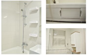 1. ванна с обновленным акриловым покрытием, раздвижным экраном, пространство под ванной можно использовать для средств уборки