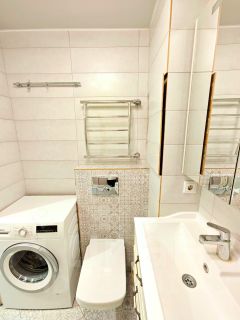 — Качественный ремонт (10 лет), современная мебель и техника: кондиционер, холодильник, посудомоечная и стиральная машины. Наличие мелкой техники: чайник, микроволновая печь,, утюг, пылесос. В квартире предусмотрено много мест для хранения вещей.