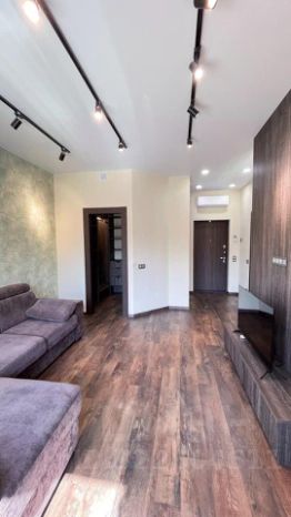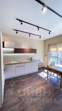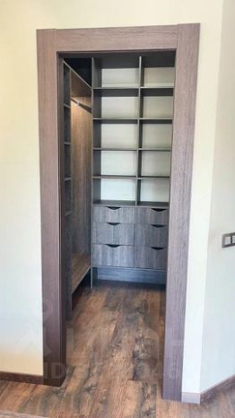 Планировка : просторная кухня и отдельная гостиная с большой гардеробной комнатой .