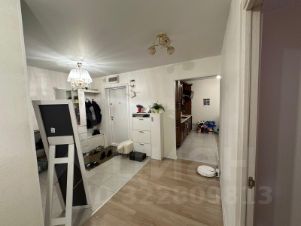 Просторная прихожая с зеркалом и множеством шкафов и полочек.