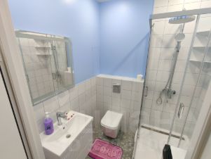 Квартира с дизайнерским ремонтом, полностью готова для комфортного проживания. В комнате и на кухне есть вся необходимая мебель. Из техники — холодильник, телевизор, посудомоечная и стиральная машины. Ванная комната оборудована душевой кабиной. Лоджия добавляет дополнительное пространство для отдыха.