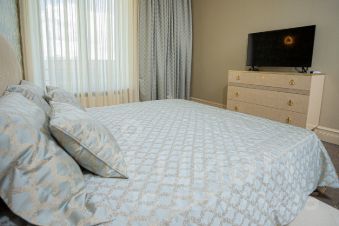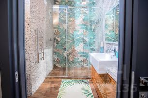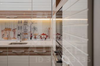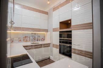 Квартира выполнена по дизайн проекту с использованием в отделке премиальных материалов : пол наборный дубовый паркет со вставками из латуни/ керамогранит; межкомнатные двери не стандартной высоты выполненные на заказ, обои Cole&Son, плитка Porcelanita Dos. Установлены система анти протечки, кондиционирования. Квартира оборудована: стиральной, сушильной , посудомоечной машинами, утилизатором мусора, фильтром воды, бойлером, встроенными духовым шкафом и СВЧ. Встроенная мебель: кухня, шкафы, - делались на заказ по эскизам дизайнера.