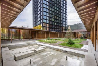 Архитектура разработана бюро Kleinewelt Architekten. Комплекс обладает развитой инфраструктурой: рестораны, коворкинг, фитнес-зал и круглосуточная охрана.