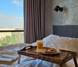 Стильные апартаменты с панорамным видом на центральный вход ВДНХ. В студии есть все для комфортного проживания. Большая, удобная кровать с ортопедическим матрасом сделает ваш сон незабываемым, а вид из окна волшебным) Кухня оснащена всем необходимым для приготовления пищи. Варочная панель, микроволновая печь, посудомоечная машина и даже духовой шкаф. Ванная комната так же не оставит вас равнодушными. Отдельно стоящая ванна-чаша, позволит расслабиться и насладиться отдыхом. В нашем доме расположены множество магазинов, кафе, салон красоты и многое другое. Дом расположен в шаге от станции метро Алексеевская. Мы рады вашим детям и питомцам. Добро пожаловать.
