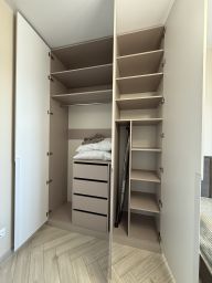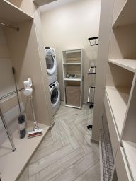 Много мест для хранения вещей, посудомоечная, стиральная и сушильная машины, два кондиционера.