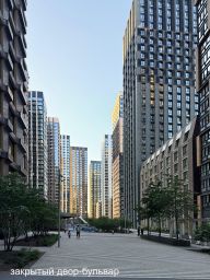 Большая внутренняя закрытая территория, где не слышно шума улицы, можно прогуляться, отдохнуть или заняться спортом. На первых этажах работают кафе, магазины и салоны.