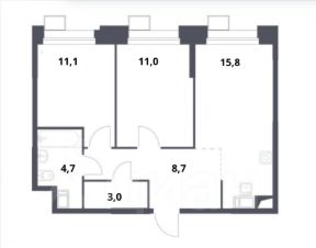 • две изолированные комнаты: 11 м² и 11,1 м²