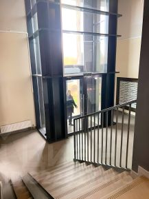 В доме просторный цокольный этаж. Два пассажирских лифта, грузовой лифт, есть пандус.