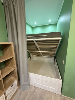 - изолированная ниша для кровати со шторой создает ощущение отдельной спальни,