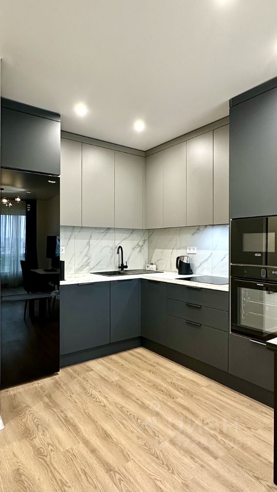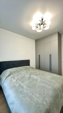 В комнате и на кухне есть вся необходимая мебель. В квартире установлена современная техника: кондиционер, холодильник, посудомоечная машина, телевизор и стиральная машина. Ванная комната оснащена ванной и совмещена с санузлом. Окна выходят на улицу, наполняя квартиру естественным светом.