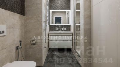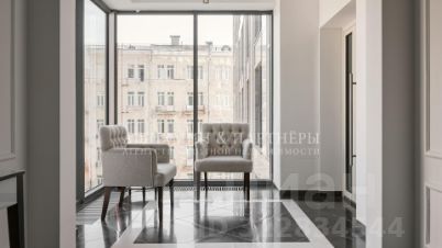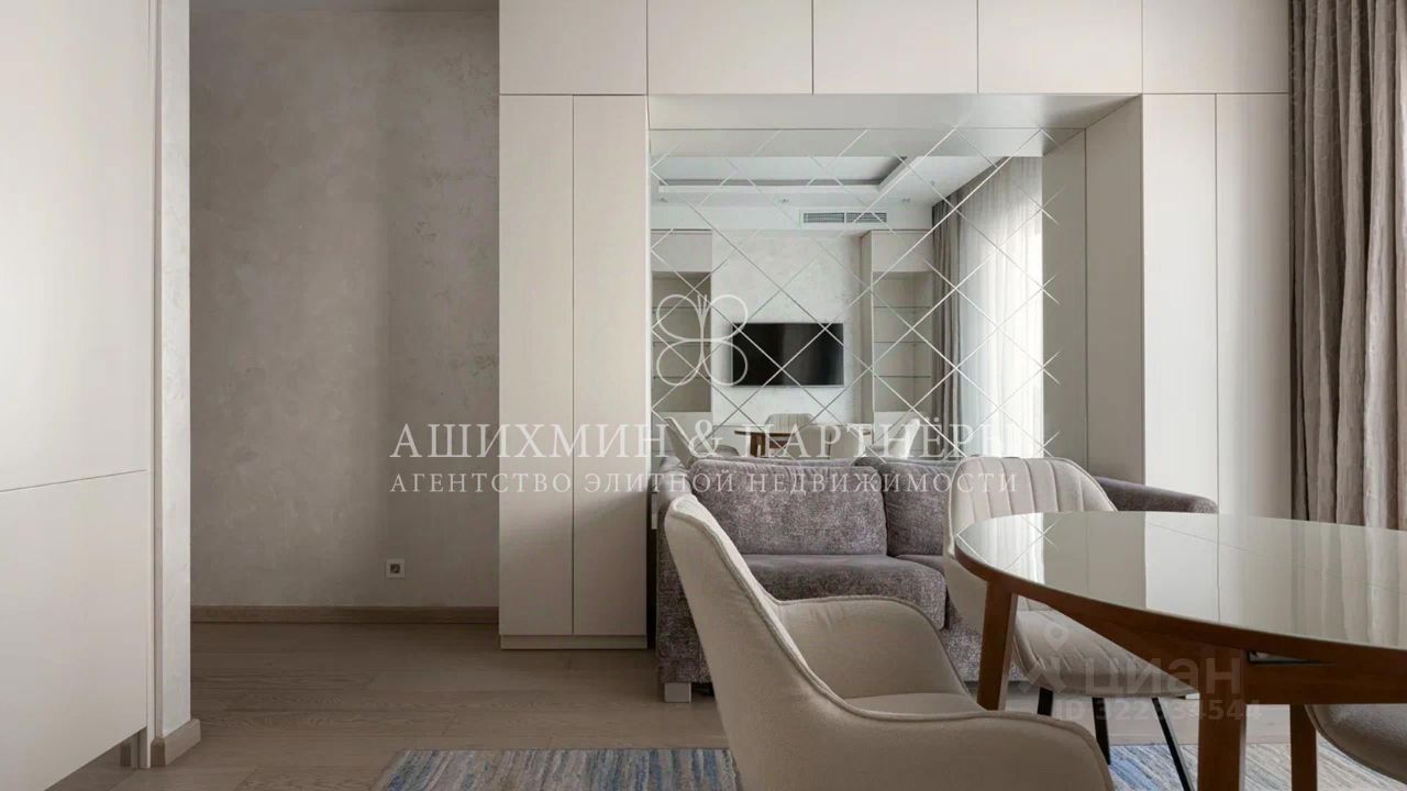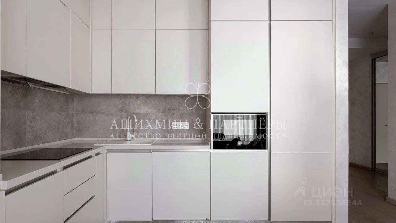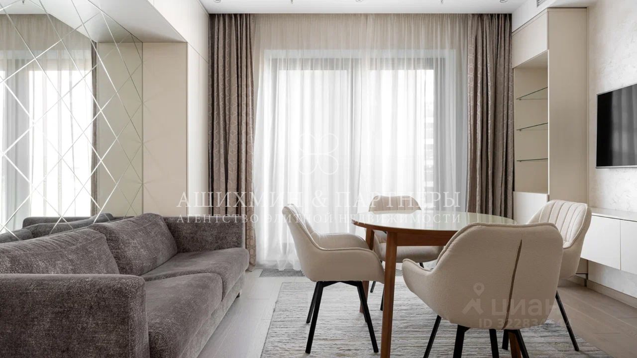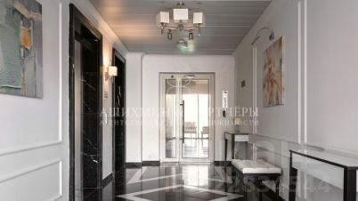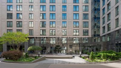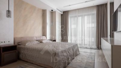 Во всех комнатах выполнен единый дизайн в пастельных тонах. Кухня укомплектована бытовой техникой Neff и посудомоечной машиной Bosh. В ванной комнате установлена сантехника бренда Duravit. В апартаменте встроена система кондиционирования.