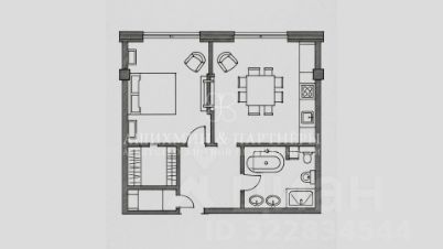 Пространство грамотно поделено на общую и приватную зоны. Функциональной планировкой предусмотрена гостиная, кухня с обеденной зоной, спальня, ванная комната и гардеробная.