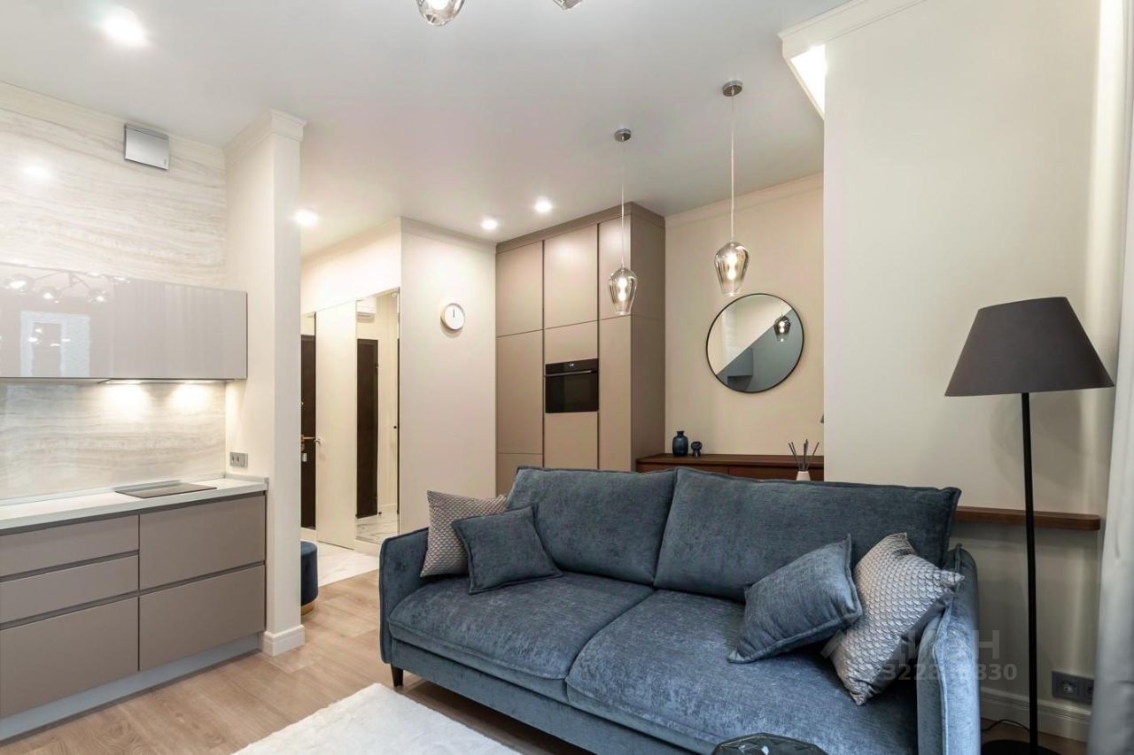 * Общая площадь 35,0 кв.м., гостиная 18,0 кв. м., кухня 10,0 кв.м., просторная гардеробная 3,5 кв.м., совмещенный санузел -3,7 кв.м., остекленный балкон, высокие потолки - 3,0 м., окна выходят в красивый, тихий двор, доступный только жителям дома.