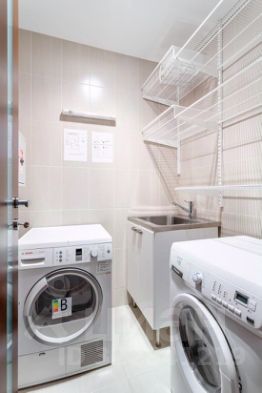 В квартире сделан дизайнерский ремонт. 3 спальни с гардеробными, холл с гардеробной и постирочная. Из техники имеется всё необходимое: кондиционер, холодильник, посудомоечная, стиральная и сушильная машины. Квартира оснащена системой вентиляции в каждой комнате. На кухне есть мебель, продуманная для максимального удобства. Планировка включает два совмещённых санузла с душевыми кабинами. Из окон открывается вид как во двор, так и на улицу, а также имеется один балкон с видом во двор.
