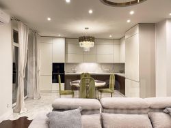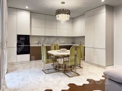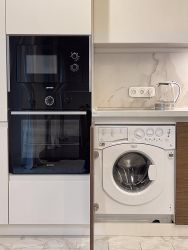 Кухня оборудована высококачественной техникой, включая холодильник, посудомоечную машину Bosch, духовой шкаф, микроволновую печь и стиральную машину, а также встроенный фильтр для воды. В спальнях установлены ортопедические матрасы с 2 типами жесткости, обеспечивающие комфортный сон, а встроенные в пол электрические конвекторы создают уют в прохладные дни.