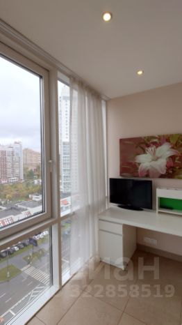 На утепленной лоджии: панорамное остекленение, вид на Мосфильмовскую улицу, рабочий стол, телевизор-монитор, сплит-система (кондиционер).