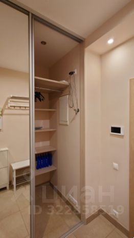 в Прихожей встроенный шкаф-купе с углублённой секцией для верхней одежды, настенная вешалка тумба для обуви (обувница)