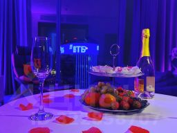 Номер на 80 этаже подарит незабываемые эмоции вам и вашей половинке. Из окна открывается шикарный вид на Москву и башни сити и облака