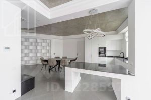 Планировка: гостиная комната с панорамным остеклением, кухня с островом оборудована бытовой техникой, четыре спальни, четыре санузла, гардеробные комнаты. Потолки 3м. Выполнен новый ремонт в светлых тонах. Квартира частично меблирована.