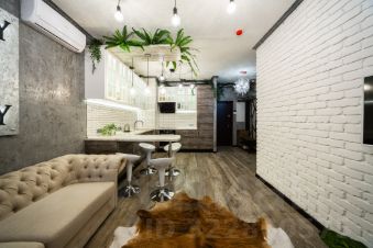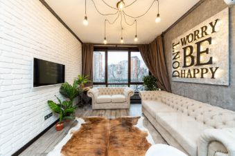 Настоящее арт-пространство, удобная планировка, панорамные окна, современная атмосфера дизайна в стиле лофт.