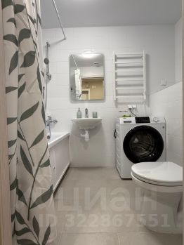 Кухня-гостиная оборудована кухонным гарнитуром со встроенной техникой, обеденный стол со стульями. В зоне гостиной комфортабельный диван, тумба под телевизор. Санузел совмещены с ванной, установлена стиральная машина.