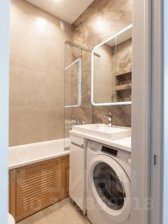 В студии есть всё необходимое: на кухне установлена современная мебель и техника, включая холодильник и посудомоечную машину. В комнате также есть мебель, а для комфортного климата в любое время года установлен кондиционер. Квартира оборудована теплыми полами в санузле и в кухонной зоне, фильтрами для воды, бойлером, видеодомофоном. Просторная гардеробная и встроенный шкаф в коридоре помогут организовать хранение вещей. В санузле смонтирована полноценная ванна, поэтому вы сможете расслабиться после долгого дня. В квартире проведён интернет, что особенно важно для работы или отдыха.